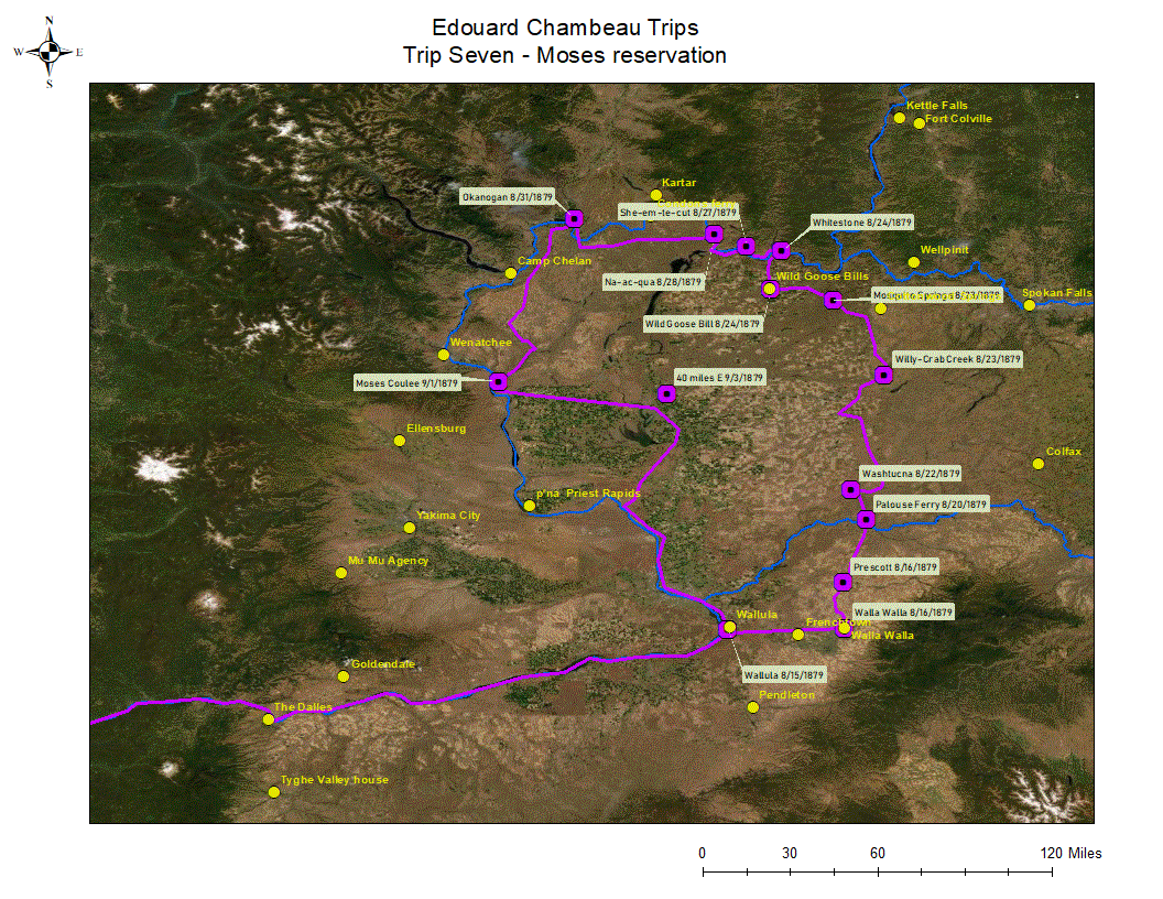 In addition to all this it is generally known among the Indians that Wilbur lied to Moses when Moses was at Yakama. This has a very bad effect. The Indians mind is very unsettled. Homily doesn’t like agent C. at the Umatilla reserve. Homily is a Spokan chief, and that is the reason the agent changed to some other chief. The $500 a year goes to another young chief named How-i-act-ton. This change was made because he says he is a (Chotlie). Ramond’s daughter is a niece of Homily, and Homily is a cousin of Joseph.
