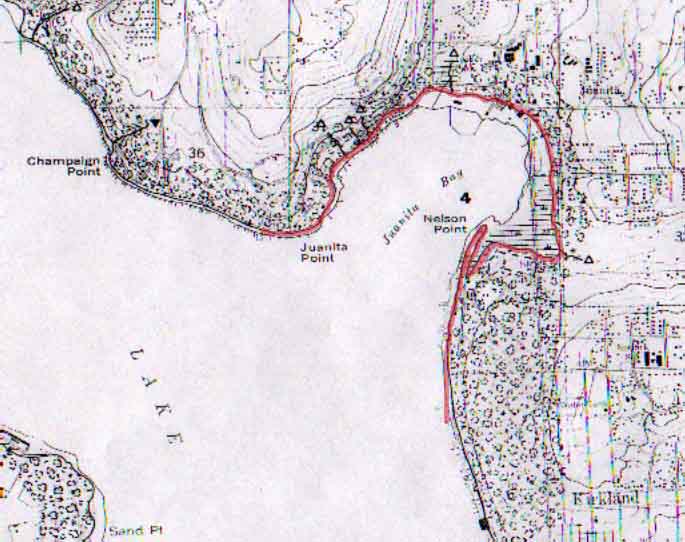 Original shoreline at Juanita Bay